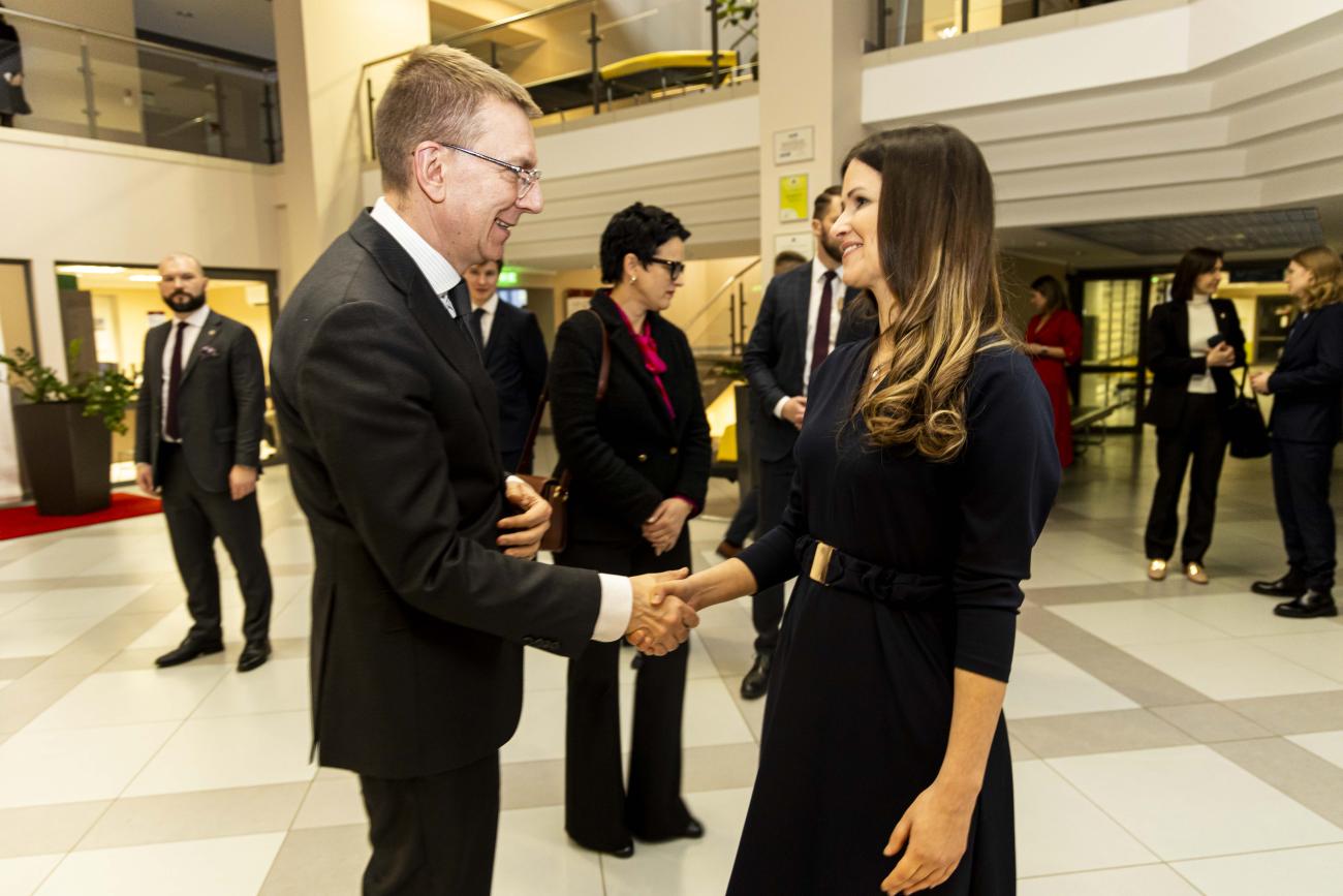 RSU Medicīnas izglītības tehnoloģiju centrā Valsts prezidents aplūkoja telpas, kur, izmantojot mulāžas un simulāciju, studējošie apgūst medicīnas un veselības aprūpes praktiskās iemaņas. Pēc ekskursijas Valsts prezidents devās uz diskusiju ar jauniešiem no Studējošo pašpārvaldes, Medicīnas un Eiropas studiju fakultātes domes, RSU Senāta un RSU Ārvalstu studentu asociācijas (International Student Association).