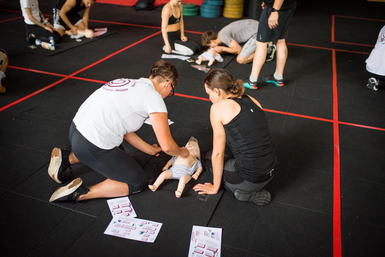 Slīpēt prasmes pirmās palīdzības sniegšanā RSU profesionāļi nedēļas ietvaros piedāvāja divkārt, pasākumos Stay Alive at Crossfit trenējot palīdzības sniegšanas prasmes gan pieaugušajiem, gan zīdaiņiem. Lielāku atsaucību starp kustības Crossfit Riga dalībniekiem guva tieši zīdaiņa glābšanas prasmju treniņš.