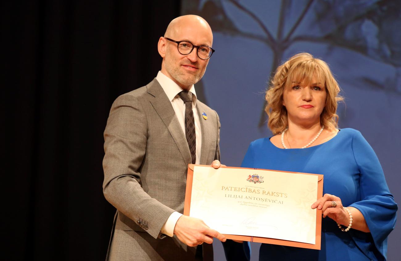 Ceturtdien, 5. maijā, Rīgas Stradiņa universitātes (RSU) aulā veselības ministrs Daniels Pavļuts veselības nozares darbiniekiem pasniedza Veselības ministrijas Atzinības un Pateicības rakstus.