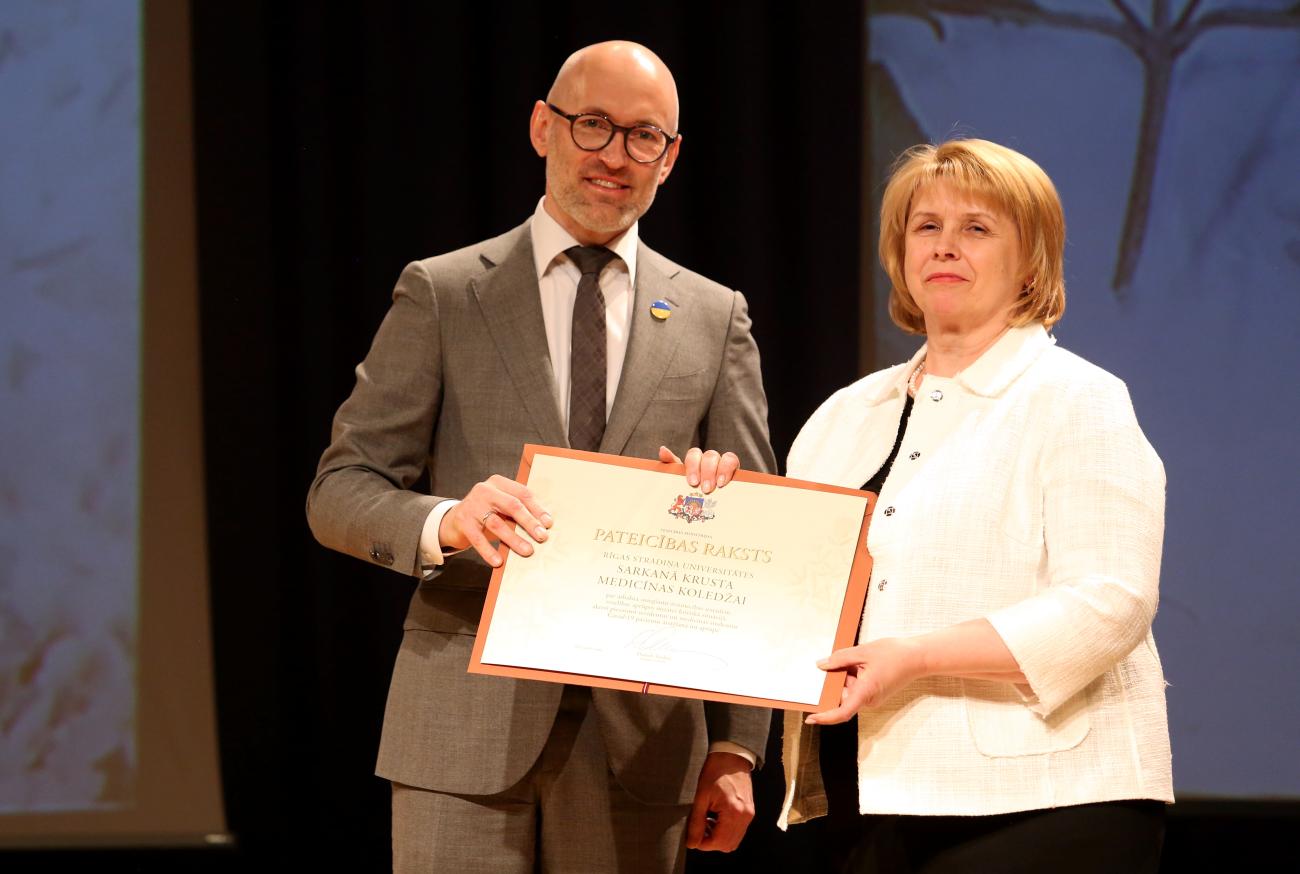 Veselības ministrijas Pateicības raksts tika pasniegts arī atsevišķi RSU un RSU Sarkanā Krusta medicīnas koledžai par atbalsta sniegšanu ārstniecības iestādēm veselības aprūpes nozarei kritiskā situācijā, aktīvi piesaistot rezidentus un medicīnas studentus Covid-19 pacientu ārstēšanā un aprūpē.