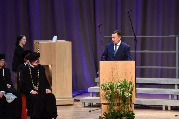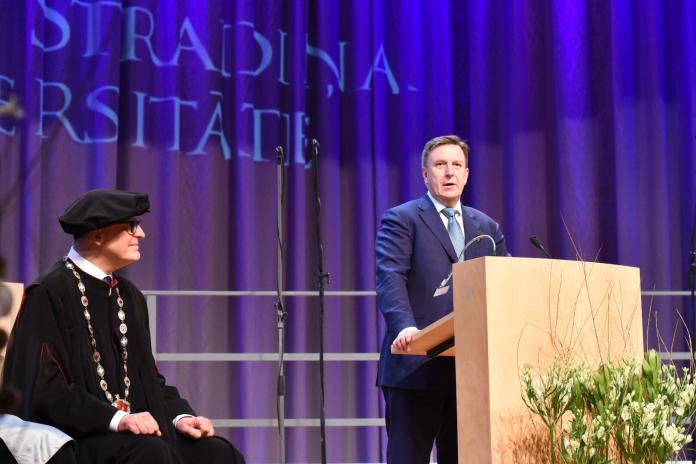 Pēc Latvijas Republikas himnas apsveikuma runas teica Ministru prezidents Māris Kučinskis un Veselības ministrijas pārstāvji, Izglītības un zinātnes ministrs Kārlis Šadurskis, Latvijas Zinātņu akadēmijas prezidents Ojārs Spārītis un akadēmijas pārstāvji, RSU Studējošo pašpārvaldes vadītāja Linda Skulme un citu Latvijas augstskolu pārstāvji.