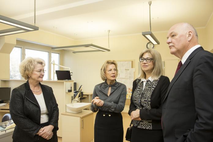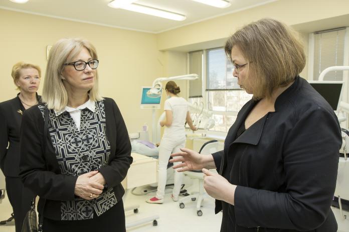 Ministre iepazinās ar RSU Stomatoloģijas institūta un Stomatoloģijas fakultātes apmācību centra (preklīnikas) tehnoloģiskajām iespējām vietējo un ārvalstu studentu apmācībā, kā arī tikās ar universitātes vadību, lai pārrunātu aktualitātes augstākajā izglītībā un augstskolu specializācijā.