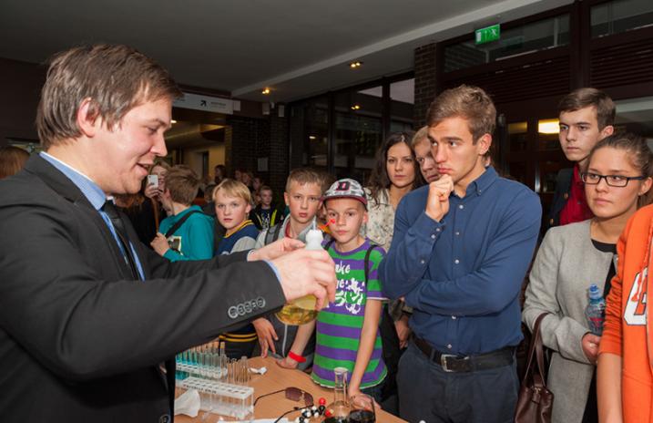Cilvēka fizioloģijas un bioķīmijas katedras mācībspēku eksperimenti vairāk piesaistīja vecāko klašu skolēnu un pieaugušo uzmanību.