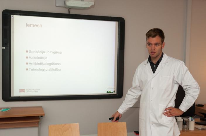 Bioloģijas un mikrobioloģijas katedrā ikviens varēja risināt krustvārdu mīklu, noklausīties izglītojošu stāstījumu par vīrusu saslimšanām, aplūkot mikroskopā dažādas baktērijas u. c.