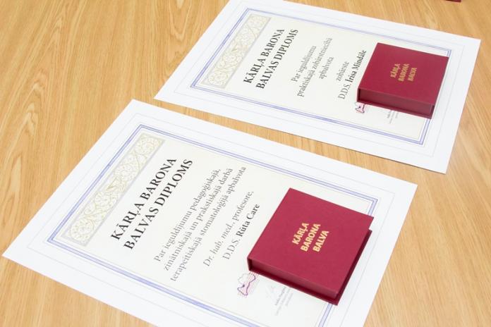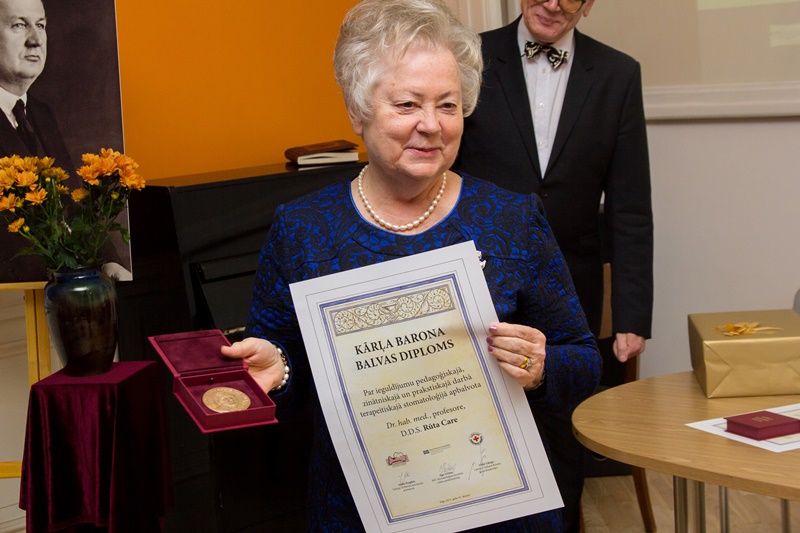 Zobārstniecības pamatlicēja Kārļa Barona balva pasniegta RSU prof. Rūtai Carei