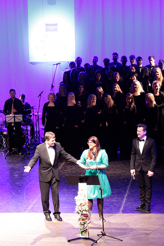 Pēc svinīgās ceremonijas notika unikāls koncerts, kurā pēc daudziem gadiem atjaunoto Raimonda Paula dziesmu ciklu Spuldze un nakts taureņi izpildīja RSU jauktais koris Rīga un instrumentālā grupa: Pēteris Liepiņš – bass, Reinis Ašmanis – bungas, Raitis Ašmanis – sitamie instrumenti. Diriģente – Zane Zilberte. Solists – Zigfrīds Muktupāvels. Pie klavierēm – Raimonds Pauls.