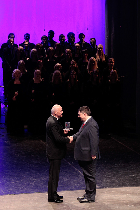 Pasniedza balvas Cantus in aeternum komponistam Rihardam Dubram un pirmajam Rīgas mēram – ārstam Jānim Birkam.