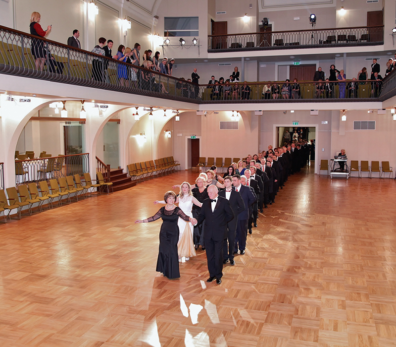 Tradicionāli balle sākās ar polonēzi. Pēc pirmās deju tūres viesi vēroja deju kluba Evita priekšnesumu. Pārējo svētku vakaru dalībnieki pavadīja sarunās, dejās un aizraujošās aktivitātēs.