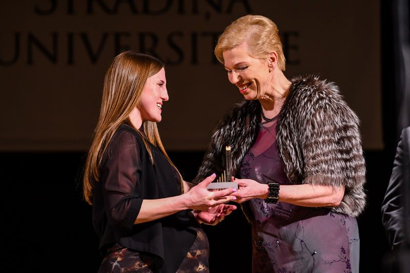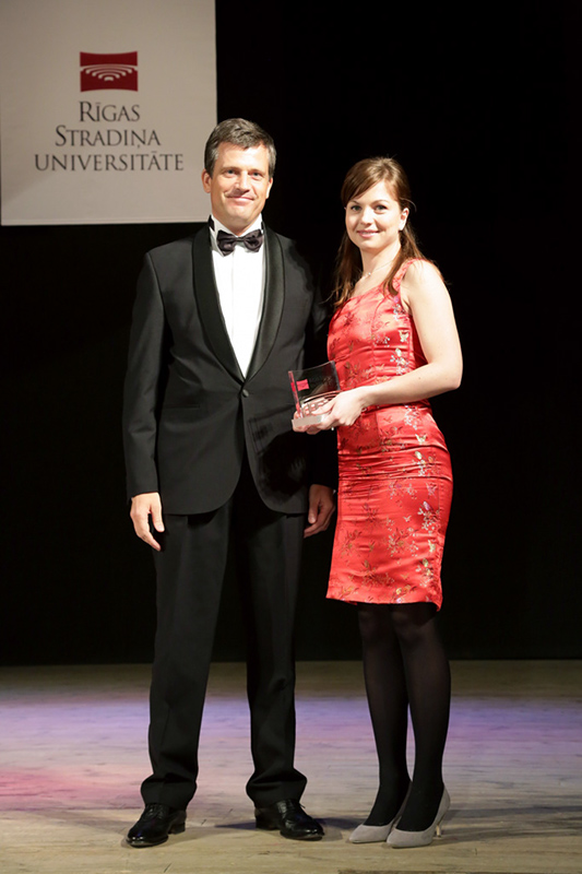 Tika apbalvoti trīs izcilākie studenti, kas katrs savā nozarē ir sasnieguši teicamus rezultātus: Andra Dērveniece (Pēcdiploma izglītības fakultāte), Aleksejs Kontijevskis (Farmācijas fakultāte) un Oskars Cēris (Eiropas integrācijas institūts).