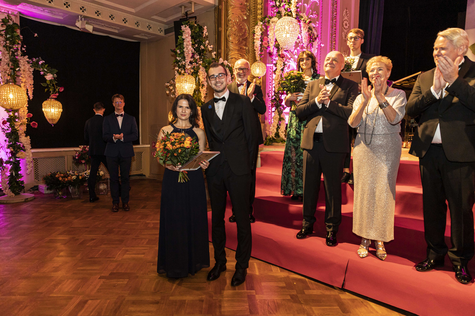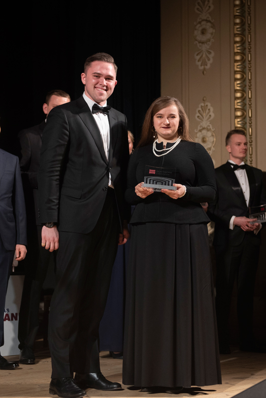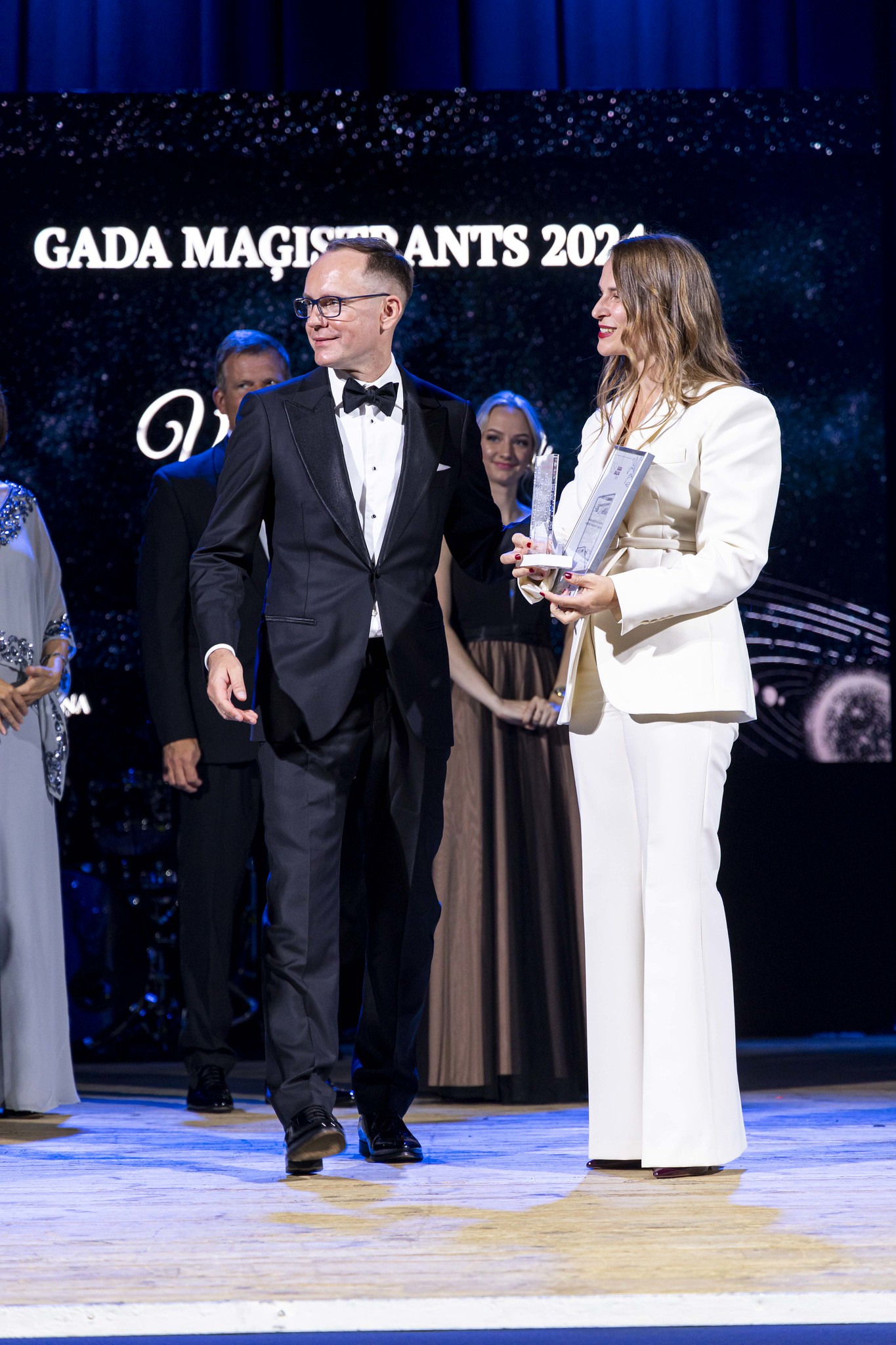 | RSU Akadēmiskā balle 2024. Administrācijas un attīstības prorektors Toms Baumanis pasniedz Gada administācijas darbinieka balvu Ingai Kempai |