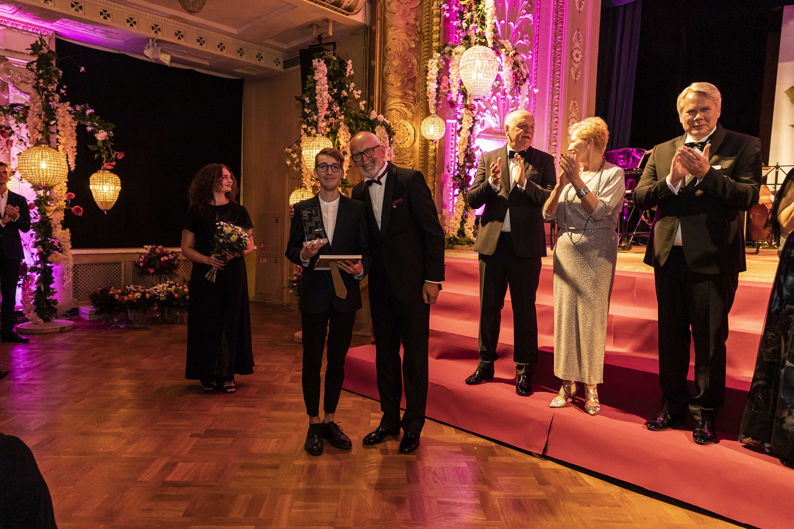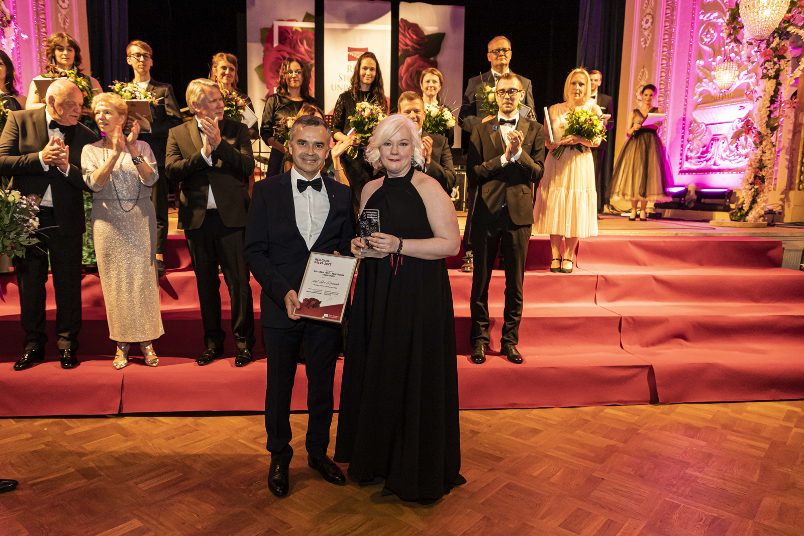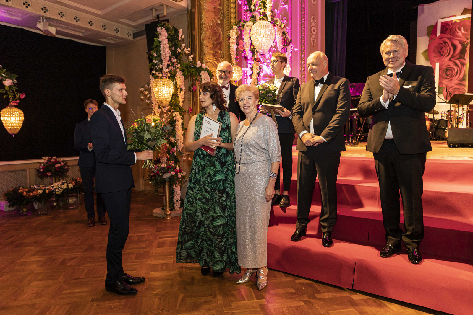 | RSU Akadēmiskā balle 2024. Administrācijas un attīstības prorektors Toms Baumanis pasniedz Gada administācijas darbinieka balvu Ingai Kempai |