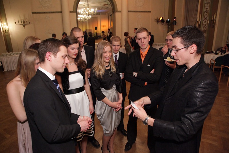 Zelta zālē muzicēja grupas Bellaccord un Čehols, brīnumus rādīja izluzionisti.