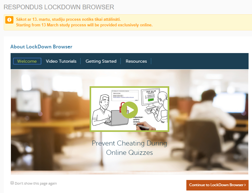 - Atgriezieties pie Respondus LockDown Browser informācijas paneļa E-studiju kursa