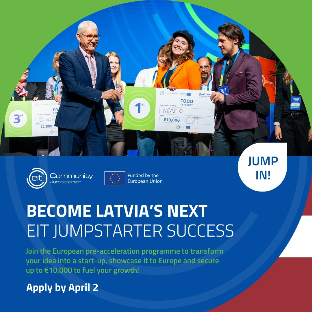 EIT Health aicina studentus un pētniekus piedalīties EIT Jumpstarter programmā un padarīt šo par sesto gadu pēc kārtas, kad komanda no Latvijas izcīna Jumpstarter apbalvojumu. Jumpstarter programma ir pirmsakselerācijas iniciatīva, kuras mērķis ir atbalstīt inovatorus ceļā no idejām līdz veiksmīgiem uzņēmumiem, piedāvājot mentoringu, finansējuma iespējas un pieeju Eiropas inovāciju tīklam. Lai palīdzētu potenciālajiem dalībniekiem labāk izprast programmu, EIT Health Latvia rīko tiešsaistes informatīvo sesiju 2025. gada 4. martā no plkst. 16 līdz 17.30.