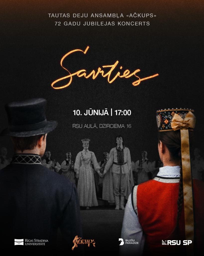 The folk dance ensemble Ačkups invites you to the 72nd anniversary performance Savīties on Sunday, 10 June, in the Riga Stradiņš University (RSU) Great Hall.