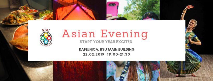 The RSU Asian Society invites you to our Freshers' Welcome Event, Asian Evening, held on 22 February in the cafeteria of the RSU Main Building.