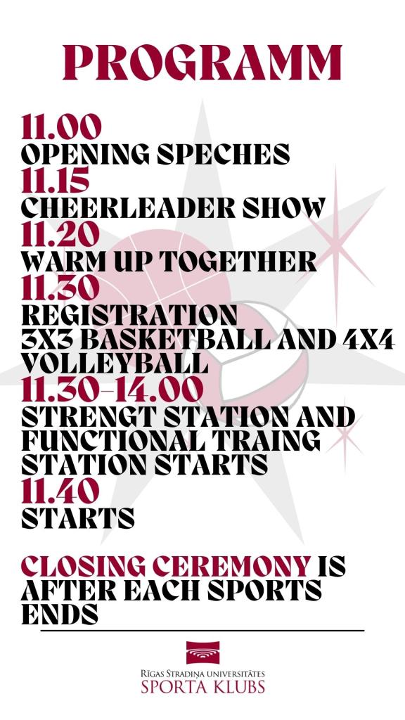 On Thursday, 7 September, the traditional Freshers' Sports Day will be taking place at RSU Sports Club at 3 Cigoriņu iela.