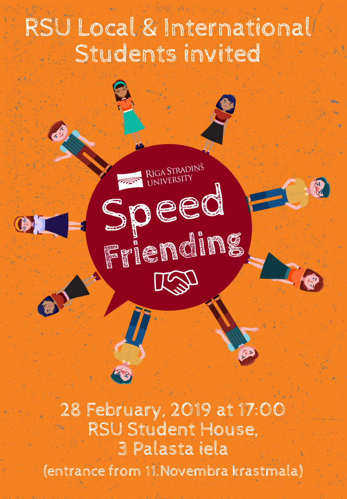Speed Friending is an easy icebreaker. During the event, you will sit across from a partner. Local students will be partnered with international students. You and your partner will have several minutes to get to know each other. At the end of a session, participants will rotate to new partners. At the end of the event, participants are free to exchange contact information, socialise, make plans to meet... and just hang out.