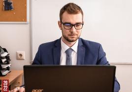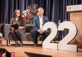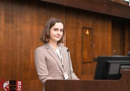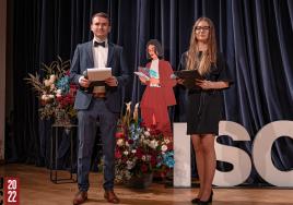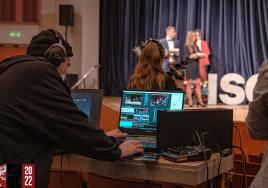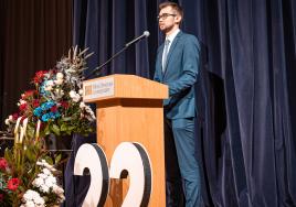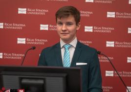 Chairman of the RSU Student Council Toms Mārtiņš Smilga addresses RSU ISC 2022 participants.