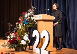 RSU Vice-Rector of Sciences Agrita Kiopa addresses RSU ISC 2022 participants.