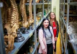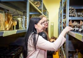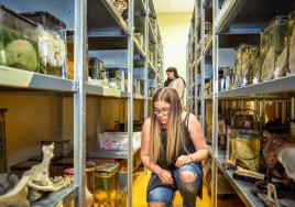 Anatomy Museum curator Ieva Lībiete showing collection exhibits