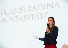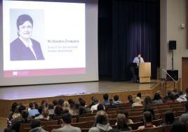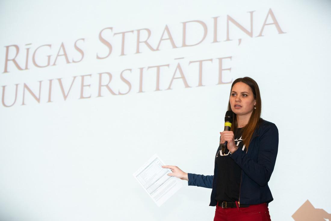 International Relations Officer, Dita Liepkalne, addresses the new international students.