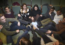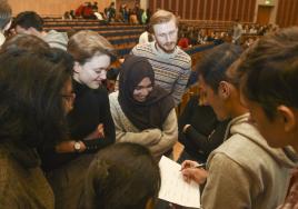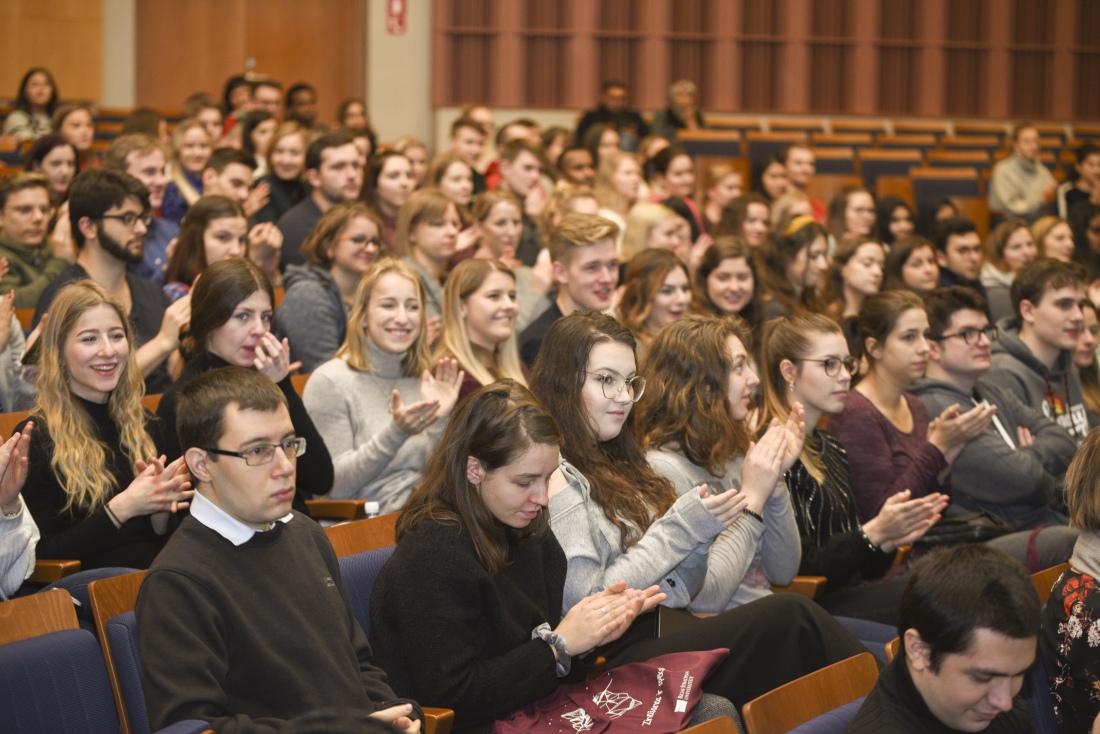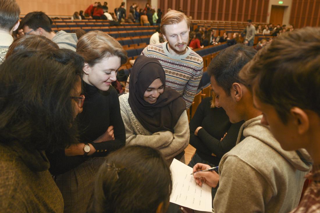 New international students in the Hippocrates Lecture Theatre during Orientation Week.