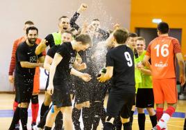 Aleksandrs Radčenko (from the left) congratulates Artūrs Mhitarjan
