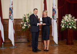 The President of Latvia,Raimonds Vējonis, presents the award to Guna Laganovska Autors: Valsts prezidenta kanceleja