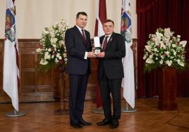 Valsts prezidents Raimonds Vējonis pasniedz apbalvojumu profesoram Indulim Vanagam Autors: Valsts prezidenta kanceleja