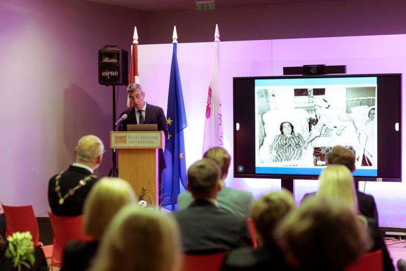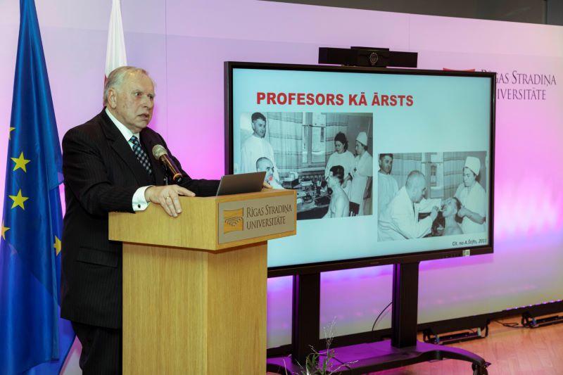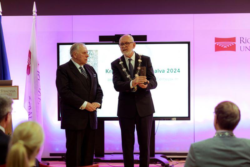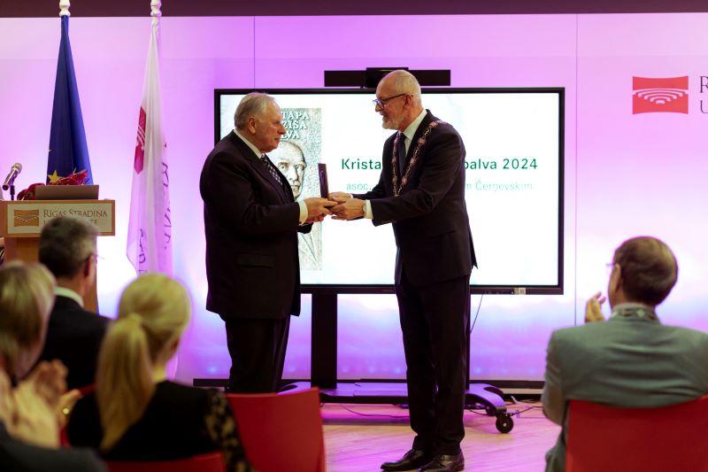 Balvu prof. Harijam Čerņevskim pasniedz RSU rektors prof. Aigars Pētersons