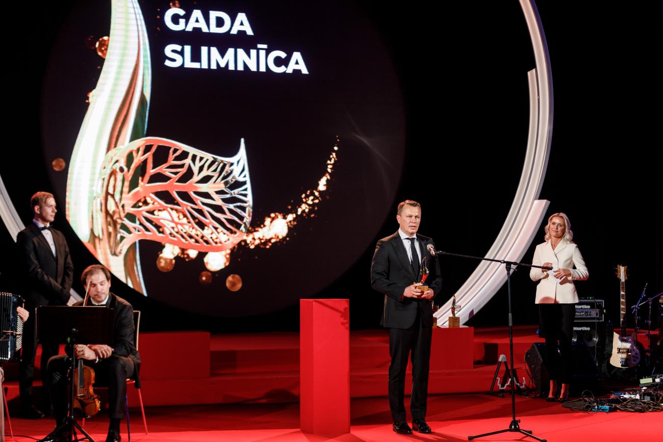 Mr Valts Ābols, Chairman of the Board of the Children's Hospital receives the Hospital of the Year award