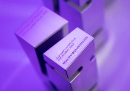 Kristīne Černaja-Mežmale, Member of the Council of the Bank of Latvia and the Corporate Governance Advisory Board, presents the award to RSU Rector Prof. Aigars Pētersons