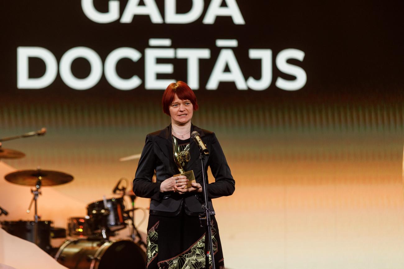 RSU Studējošo pašpārvaldes pārstāve Paula Feldmane pasniedza balvu nominācijā "Gada docētājs"