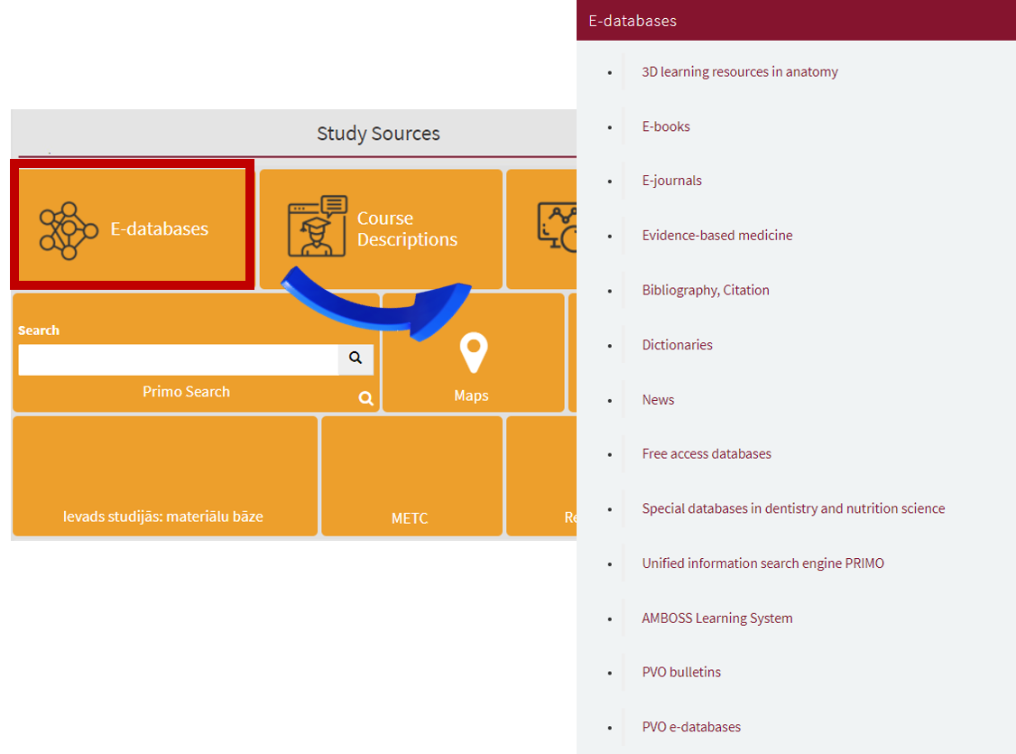 Under the Study sources search for tile named "E-databases". Click on it.