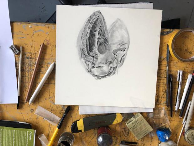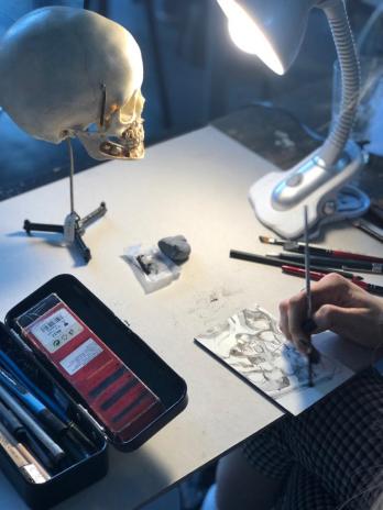Art students learn anatomical drawing using specimens from the RSU Anatomy Museum