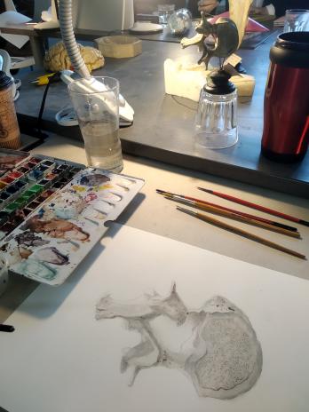 The talented art students and lecturers who participated in this masterclass got the opportunity to transform historical anatomical specimens and moulages into artworks by using carbon dust, silver point and watercolour techniques. This was the first event of its kind as part of the cooperation agreement between both educational institutions. The organisers strove to find ways to use the RSU Anatomical Museum’s historical collection into a contemporary context. Project organisers are planning to develop the anatomical drawing masterclass into a more ambitious and accessible project for RSU students as well.