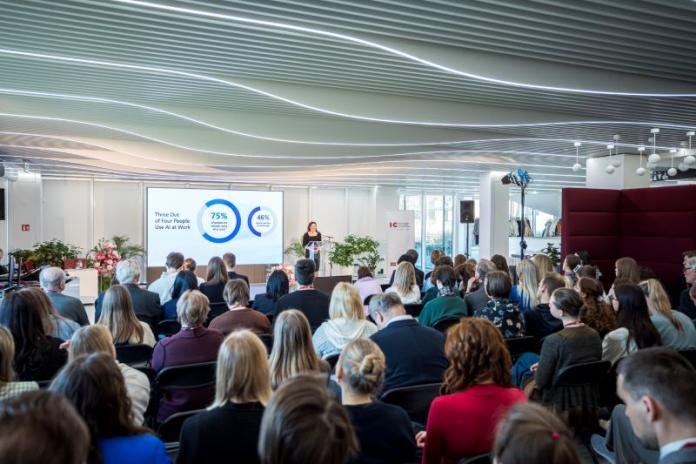 Renāte Strazdiņa, who guides organisations in implementing responsible AI in line with ethical and legal standards, also spoke at the conference. Her professional experience covers IT strategy, digital transformation, and sustainability issues. In her keynote speech, she stressed that universities are places where multi-layered and critical discussions take place, so conferences like this are crucial for building leadership at a time when AI technologies are rapidly becoming part of our everyday lives. She pointed out that around 75% of people now use AI in their work, with the figure being even higher in Latvia. Moreover, it is not only young people who use these tools—people of all generations use AI actively.