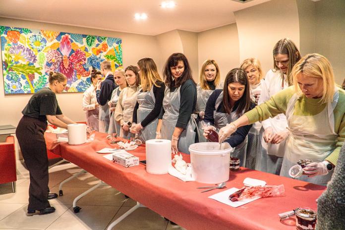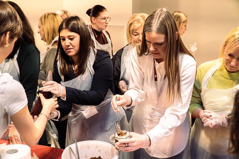 On 13 November, in the spirit of the National Day of Latvia, employees and students of Rīga Stradiņš University (RSU) participated in a masterclass to learn how to make a traditional rye bread dessert in the canteen of the RSU Main Building.