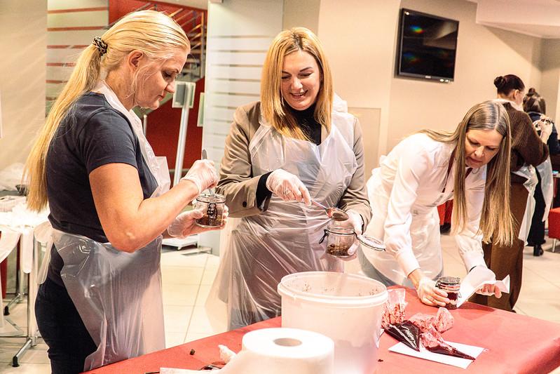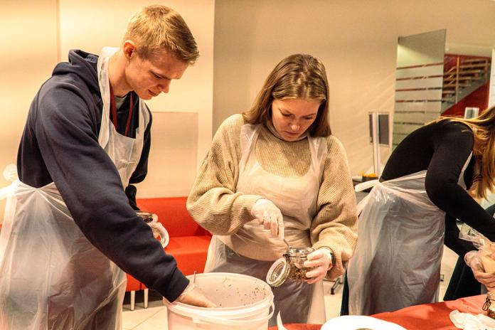 The masterclass was led by Valērija Orlova, a master’s degree student in nutrition science, and by the members of nutrition science student interest group. All the ingredients were prepared in advance in the training kitchen of the RSU Medical Education Technology Centre, so all the participants had to do was to arrange them beautifully in jars and decorate them.