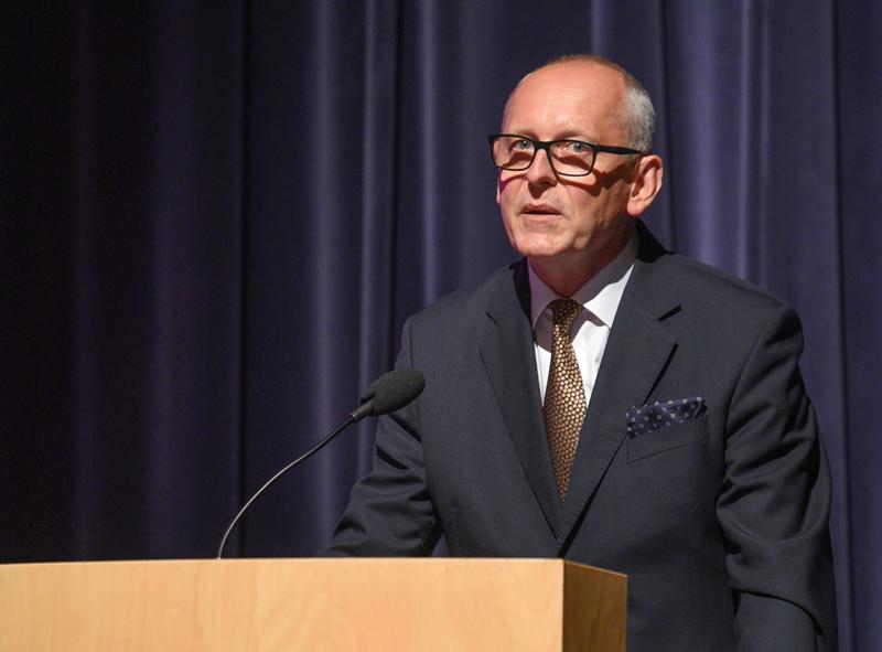 Prof. Aigars Pētersons speaking at the RSU Academic meeting.