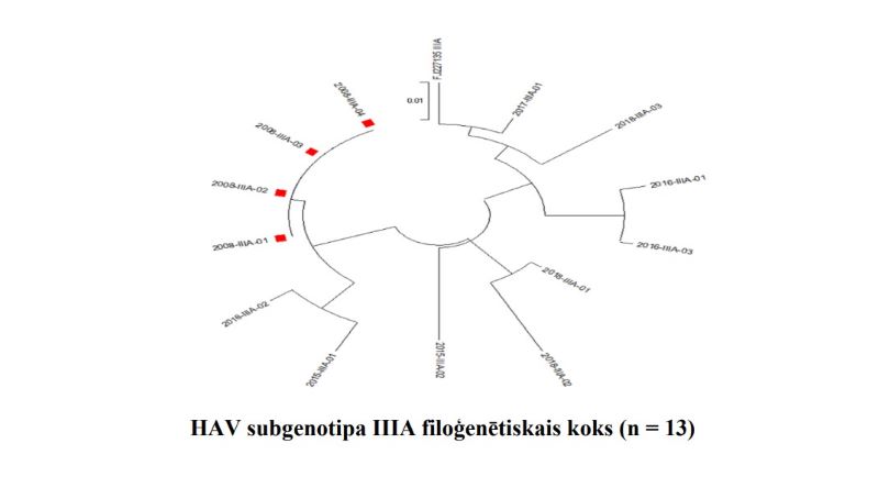 The HAV subgenotypes that are circulating in Latvia – IA, IB and IIIA – are also the most prevalent worldwide. The data shows that HAV subgenotype IA has 13 clusters and 12 separate infection cases, HAV subgenotype IB has eight clusters and 11 separate infection cases, while HAV subgenotype IIIA has one cluster and nine separate infection cases. Sequencing data helps to track the spread of infection and any new hepatitis A cases can be quickly identified from the phylogenetic tree and the already known clusters.