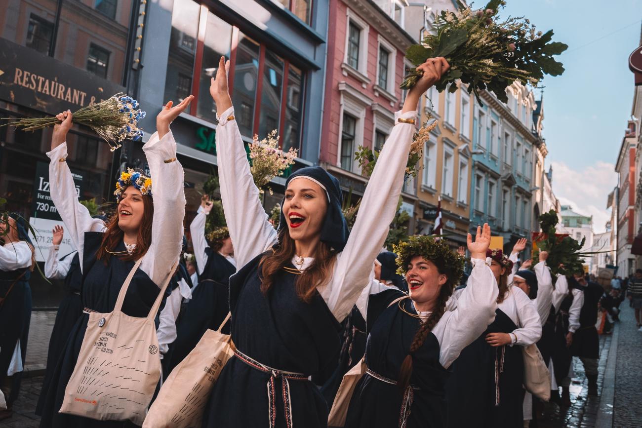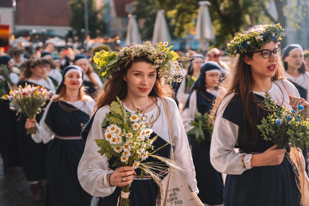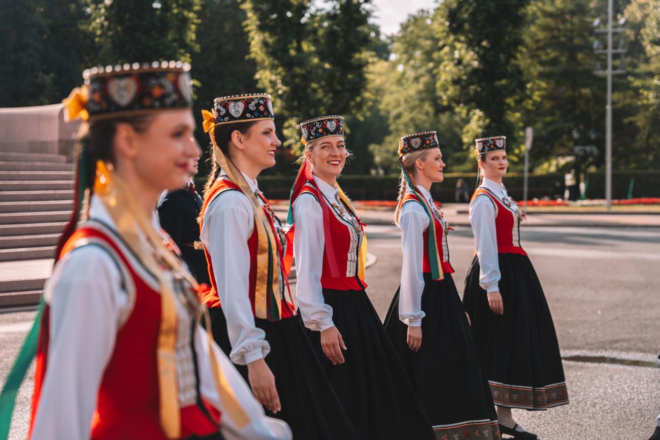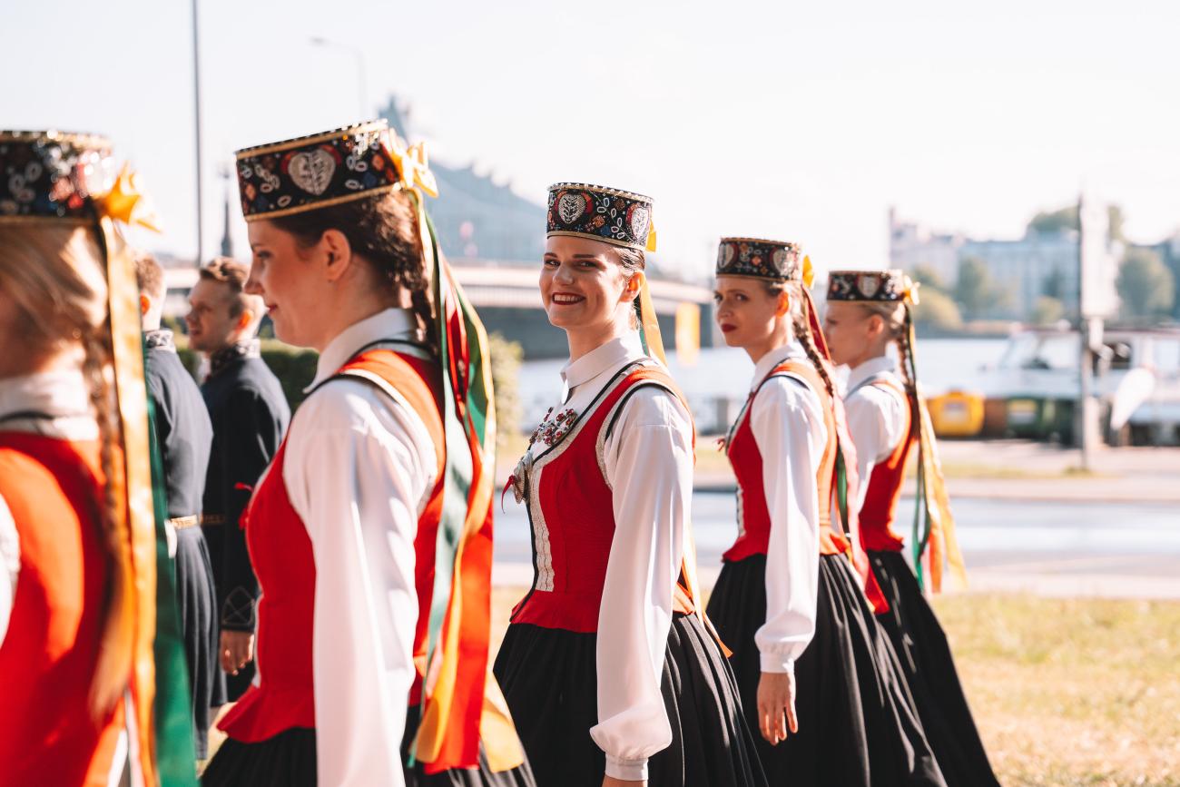 Folk dance ensemble Ačkups and choir Rīga took part in the Song and Dance Festival parade
