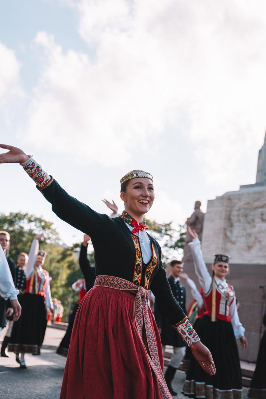 TDA Ačkups will perform in the Latvian stage dance grand concert Balts (White), the grand concert Mūžīgais dzinējs (Perpetual Motion) and the closing concert Kopā augšup (Upward Together), while the mixed choir Rīga will delight the audience in the grand choral concert Tīrums. Dziesmas ceļš (The Field. The Road of Song) and the final concert Kopā augšup (Upward Together).