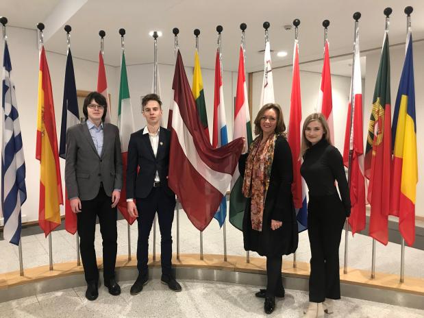 The students were welcomed to Brussels by Inese Vaidere, Sandra Kalniete and Kārlis Šadurskis, who are Members of the European Parliament. Each of them offered a slightly different agenda. All students had the opportunity to become acquainted with the functions, the daily work and the history of the development of the European Parliament at The Parlamentarium, an interactive educational centre. Here they could see the opportunities that members of the parliament have to influence adopted decisions, and learn about the possibilities of the parliament to influence processes in Europe and beyond.