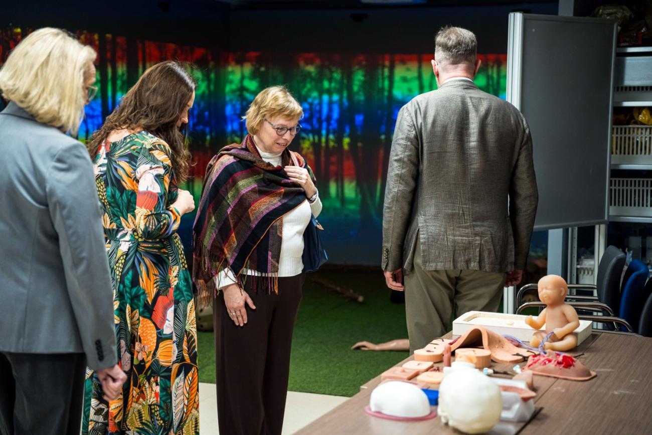 During the visit, the ambassador met with RSU management and students and explored the University’s modern study facilities and simulation technologies, which allow students to acquire practical skills in a realistic environment.