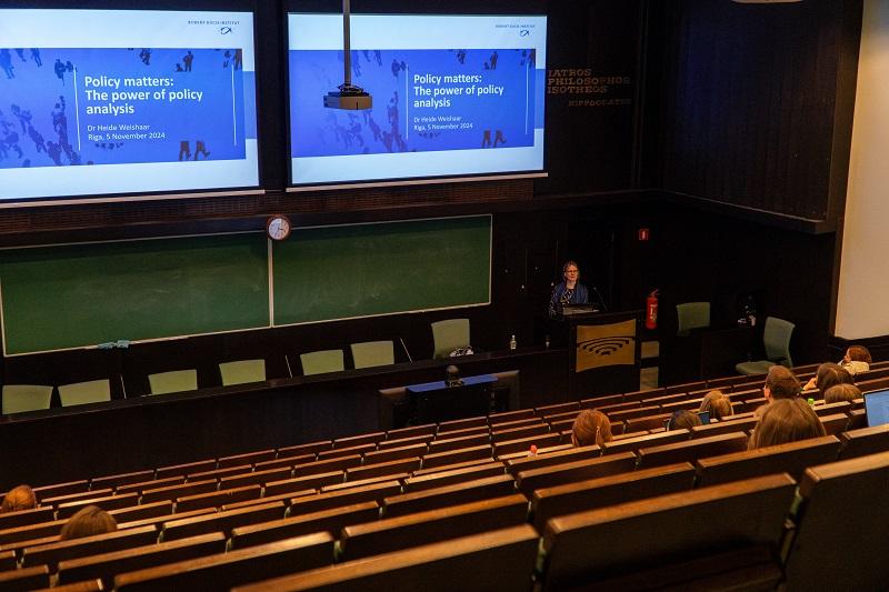 A guest lecture titled “Public Health Policy Matters: The Power of Policy Analysis” was held at Rīga Stradiņš University (RSU), 16 Dzirciema iela, on 6 November this year. The lecture was delivered by Heide Weishaar, PhD, MSc, a senior public health researcher at the International Health Protection Center of the Robert Koch Institute and deputy head of the Evidence-based Public Health Unit (ZIG2) in Germany. It was moderated by acting Assoc. Prof. Dr. med. Sandra Dudareva.