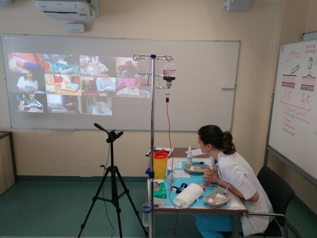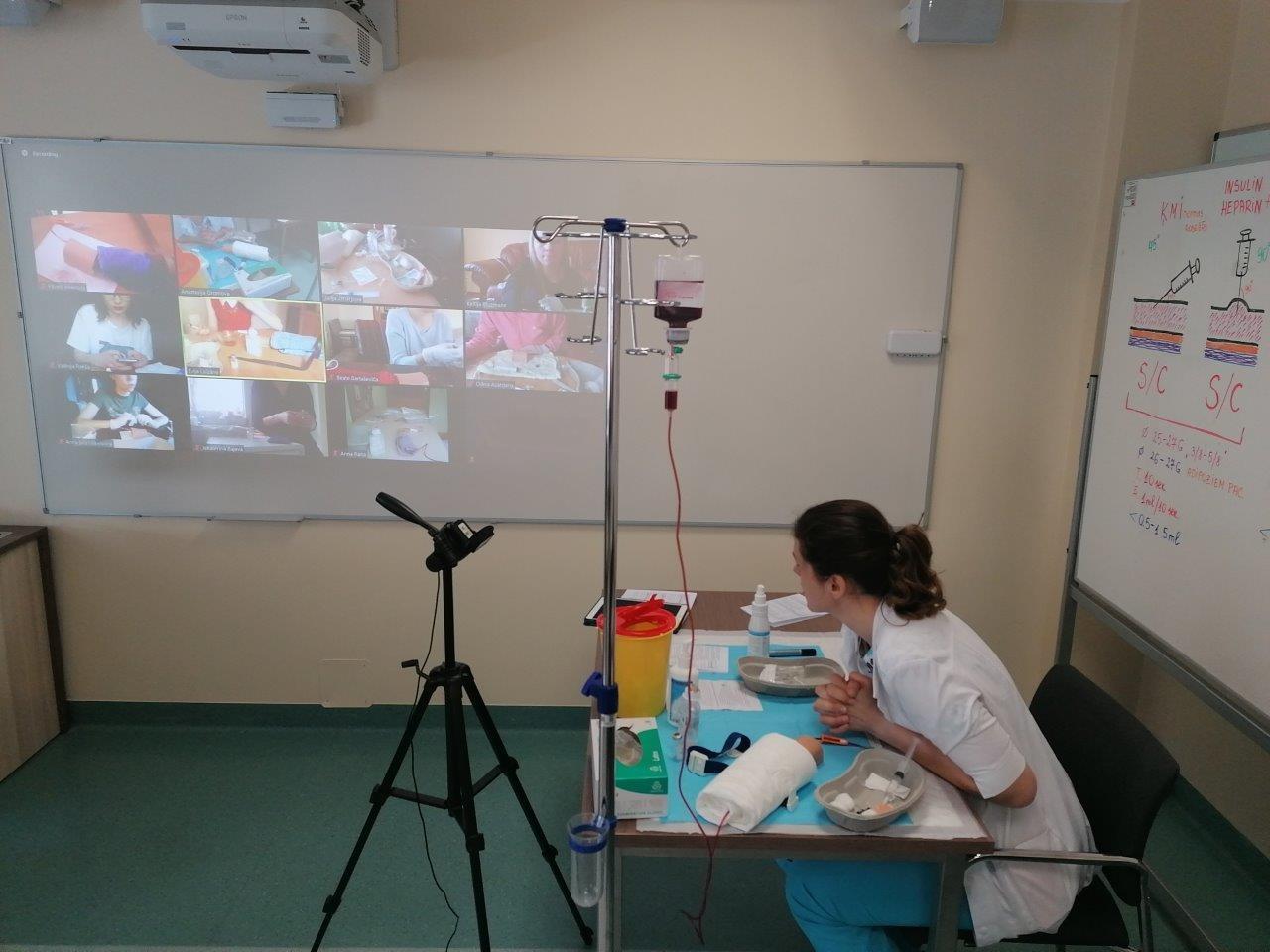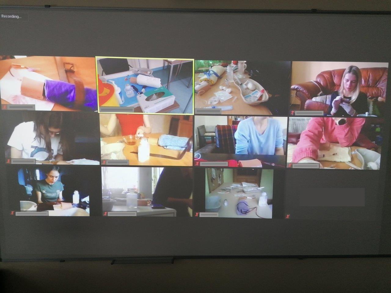 ‘Students can receive equipment sets at the METC, while those who are not in Riga or are, for example, in self-isolation can receive them by mail. It is prohibited to use the equipment for medical purposes, as the equipment is intended solely for practising simulated manipulations. After the sets have served their purpose, they must be returned to the RSU METC and placed in special containers in compliance with regulations on the disposal of medical waste,’ explains Jekaterina Zvidriņa, Clinical Simulations Coordinator at the METC. The classes are held online using Zoom. During the online sessions, the lecturer explains the purpose and application of the skill and gives a step-by-step demonstration, while students perform the actions using their equipment. They can afterwards repeat the procedure themselves and improve their skills at home.