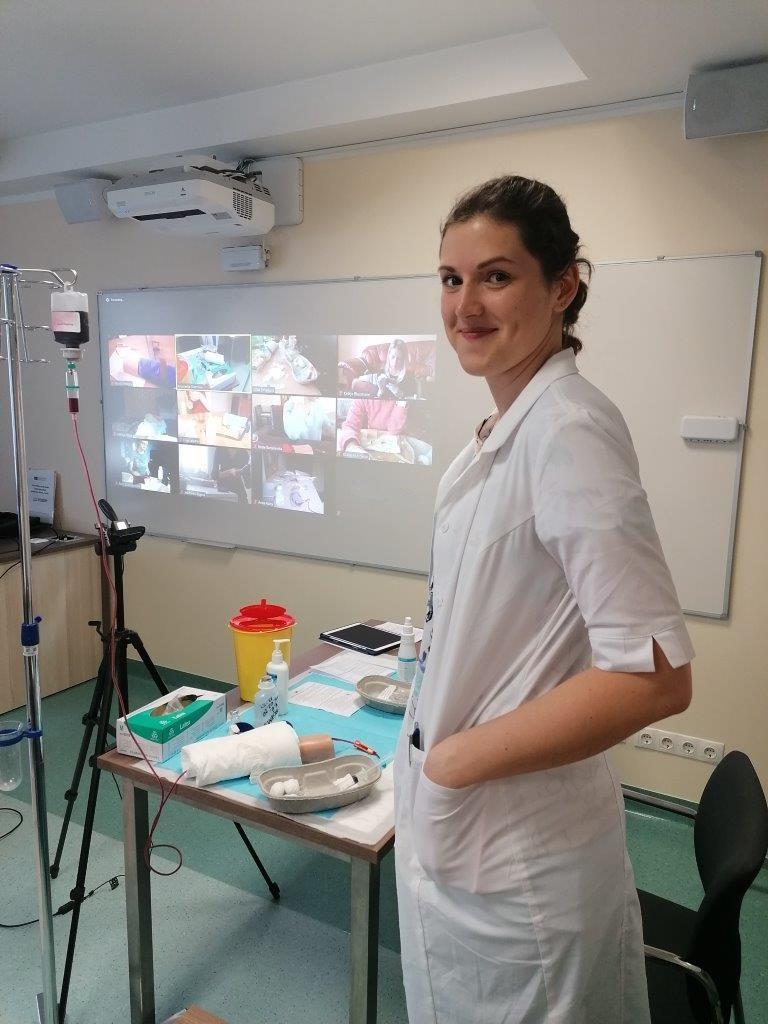 Pāvels Ananovs, Kate's groupmate, adds: ‘In view of the state of emergency in the country, I was convinced that we would have to learn all practical skills later, when the situation in the country would change. I was pleasantly surprised that I already received a simulation set for the first practical class that had everything I needed in order to learn the study material. The approach was very creative and it was exciting to work this way. Finally, I had the opportunity to talk about the way remote studies are organised for medical students and show it as well! It is good to know that our university is able to handle such unusual situations quickly and creatively, doing everything they can to ensure that the quality of our studies doesn’t suffer and that students are provided with the necessary study conditions. I wish to thank the university and METC staff very much for planning and making so many sets, and for taking students’ opinions into account!’