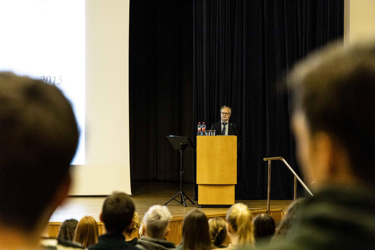 Dr. Juha Hernesniemi is a celebrated Finnish neurosurgeon. His book Aivokirurgin muistelmat (Memoirs of a Brain Surgeon) was just published in Finland. He visited Rīga Stradiņš University (RSU) on Friday 9 December to speak to an audience of over 200 students about his life and experience. He was introduced by RSU Alumni Johanna Nisula who graduated in 2021.